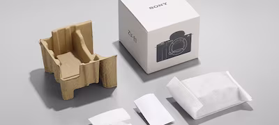 Opakowanie aparatu ZV-E1 zawiera materiał Sony „Original Blend Material”, powstający z bambusa, trzciny cukrowej i makulatury — bez dodatku tworzyw sztucznych. Dzięki temu opakowanie łączy wysoką jakość i wytrzymałość z możliwością recyklingu i małym wpływem na środowisko.
