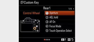 Dzięki funkcji Moje pokrętło, do przedniego i tylnego pokrętła oraz tarczy sterującej można przypisać trzy zestawy opcji menu. Często używane funkcje przypisane do tych pokręteł stają się od razu dostępne do łatwej obsługi, jeśli użytkownik przytrzymuje przycisk funkcji użytkownika. Do przycisków funkcji użytkownika można przypisać 113 funkcji. Do fotografii, filmów i odtwarzania można przypisać niezależne zestawy funkcji.