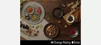 Istnieje możliwość oceniania fotografii za pomocą gwiazdek (od 1 do 5). Oceny te mogą pozostać przypisane do obrazów po ich zaimportowaniu do aplikacji Imaging Edge Desktop (przeglądarka) na komputerze. By zapobiec przypadkowym usunięciom obrazów, do tej funkcji oraz do funkcji ochronnej można przypisać przycisk niestandardowy (domyślnie ustawiono przycisk C3 dla funkcji ochronnej). Funkcje oceniania i ochrony mogą być stosowane podczas odtwarzania plików, a grupy zdjęć wykonywanych w trybie ciągłym mogą być sprawdzane, chronione i usuwane na miejscu lub w podróży. Ustawienie Image Jump, które umożliwia przewijanie podglądu co 10/100 zdjęć, i ustawienie podglądu grupowego zdjęć seryjnych pozwala szybko i sprawnie przeglądać zdjęcia.