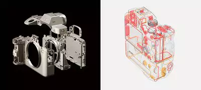Aparat α7R IV ma jeszcze bardziej wytrzymały korpus. Wykorzystano w nim lekkie i sztywne stopy magnezu (do osłony i ramy wewnętrznej), dzięki czemu aparat jest sztywny i lekki. W odpowiedzi na opinie profesjonalistów zastosowaliśmy szczelniejszą pokrywę baterii, gniazda i lepsze łączenia obudowy. Zawias do pokrywy komory mediów zastąpiono podwójnie zabezpieczonym mechanizmem przesuwania, co zwiększa odporność na wilgoć. Miejsca wdzierania się brudu i wilgoci zostały przeanalizowane, a przy mocowaniu obiektywu dodano obicie, co zwiększa niezawodność w wymagających warunkach.