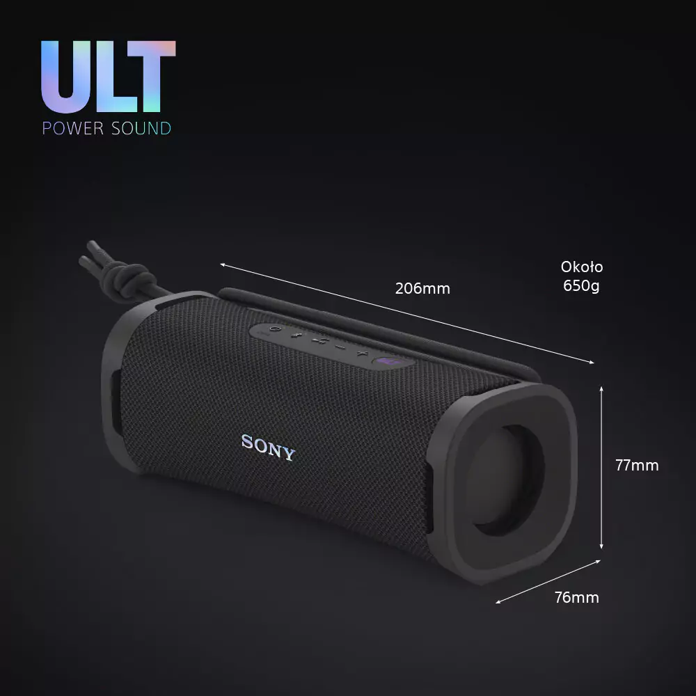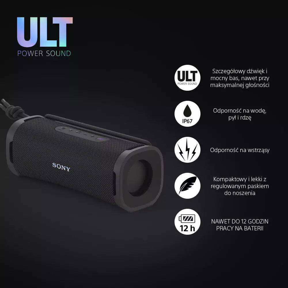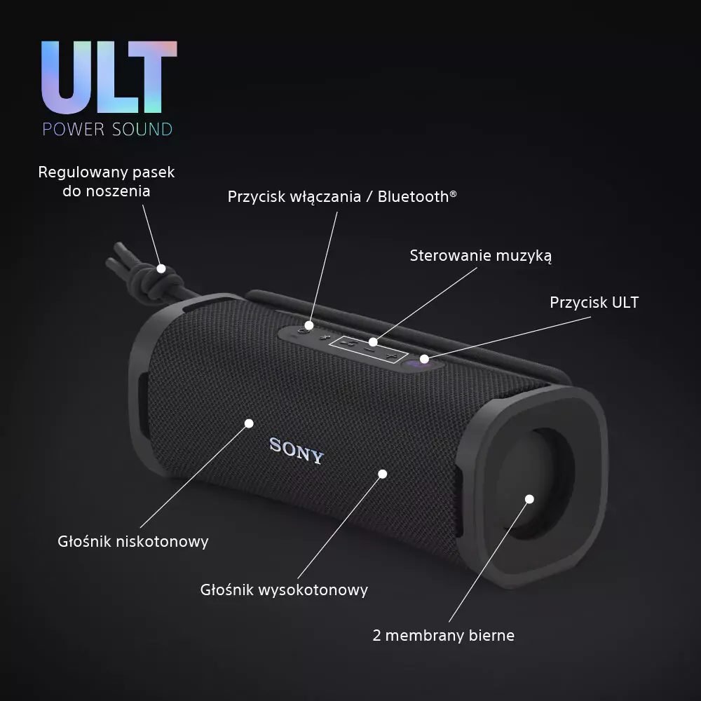 Kiedy naciśniesz przycisk ULT głośnik przejdzie na wyższy poziom donośnego dźwięku. Bas zostanie wzmocniony, a ciśnienie akustyczne wzrośnie, tworząc energetyczny dźwięk — ULT POWER SOUND.