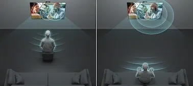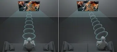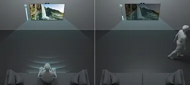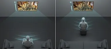 Moduł BRAVIA CAM śledzi Twoje położenie i automatycznie koryguje balans dźwięku, gdy nie znajdujesz się naprzeciwko ekranu. W rezultacie w każdym miejscu pokoju słyszysz dźwięk tak samo, jak siedząc naprzeciwko telewizora. 1 2