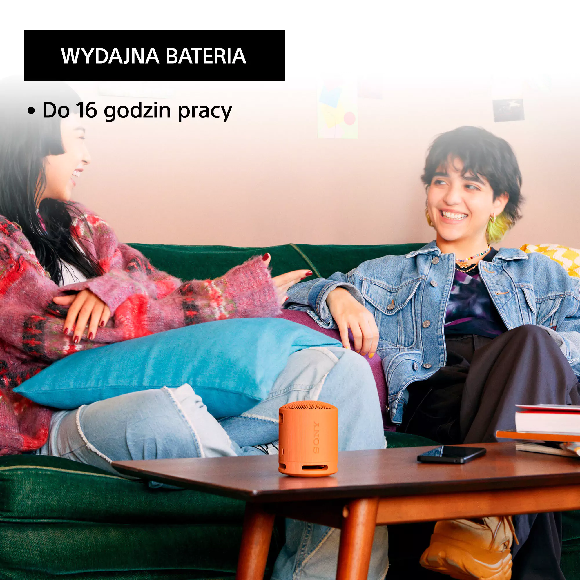 Głośnik bezprzewodowy Sony XB100 (Pomarańczowy) SRSXB100D oferuje do 16 godzin działania na jednym ładowaniu dzięki wydajnej baterii oraz szybkie ładowanie przez USB-C. Diody LED informują o stanie baterii, a kompaktowy rozmiar sprawia, że możesz zabrać go dosłownie wszędzie – do pracy, na plażę, w góry czy na piknik.