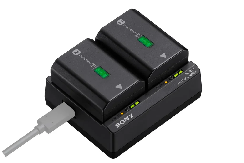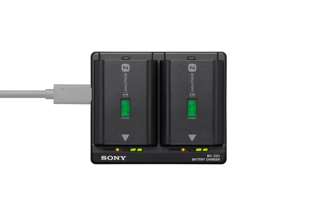 Po podłączeniu do zasilacza USB PD umożliwia szybkie, jednoczesne ładowanie akumulatorów NP-FZ100.1