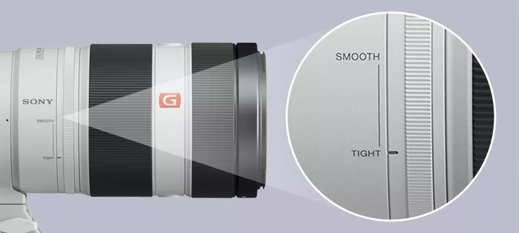 To pierwszy obiektyw α, który wyposażony jest w regulator płynności zoomu, który zapewnia mechaniczne sterowanie pierścieniem regulacji zoomu. Ustaw niższy moment obrotowy dla szybkiego zbliżania obrazu lub zwiększ moment obrotowy, kiedy wymagane jest wolne, stabilne zbliżanie obrazu. Delikatne dopasowanie pozwala na ustawienie obiektywu stosownie do indywidualnych potrzeb użytkownika.