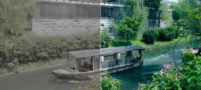 Profil wyglądu Sony S-Cinetone, opracowany pierwotnie do kamery FX9, pozwala uzyskać filmowe kolory w samej kamerze. S-Cinetone jest zoptymalizowany do naturalnej reprodukcji odcieni skóry i środka zakresu barw. Nadaje przyjemny wygląd fragmentom ulegającym prześwietleniu i imponująco odwzorowuje obiekty — bez korekt w postprodukcji. [1] Standardowy obraz (bez profilu obrazu)  [2] S-Cinetone (profil obrazu 11)