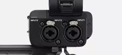 Na uchwycie kamery FX3 znajdują się dwa niezależne, pełnowymiarowe złącza XLR (XLR/TRS combo). Umożliwiają one podłączanie zewnętrznych mikrofonów profesjonalnych poprzez cyfrowe łącze audio stopki Multi Interface (MI). Do wyboru są trzy formaty nagrywania, w tym 4 kanały / 24 bity.