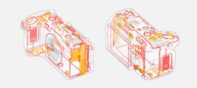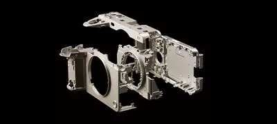 Aby zagwarantować wytrzymałość i mobilność, podstawę montażową oraz górną, przednią i tylną pokrywę wykonano z lekkiego, ale mocnego stopu magnezu. Gniazdo na obiektywy jest przytwierdzone do podstawy montażowej sześcioma śrubami, co zapewnia stabilność przy korzystaniu z ciężkich obiektywów. Z przodu przetwornika znajduje się filtr, który drga z ultradźwiękową częstotliwością 70 000 cykli na sekundę, powodując usuwanie pyłu z powierzchni matrycy.