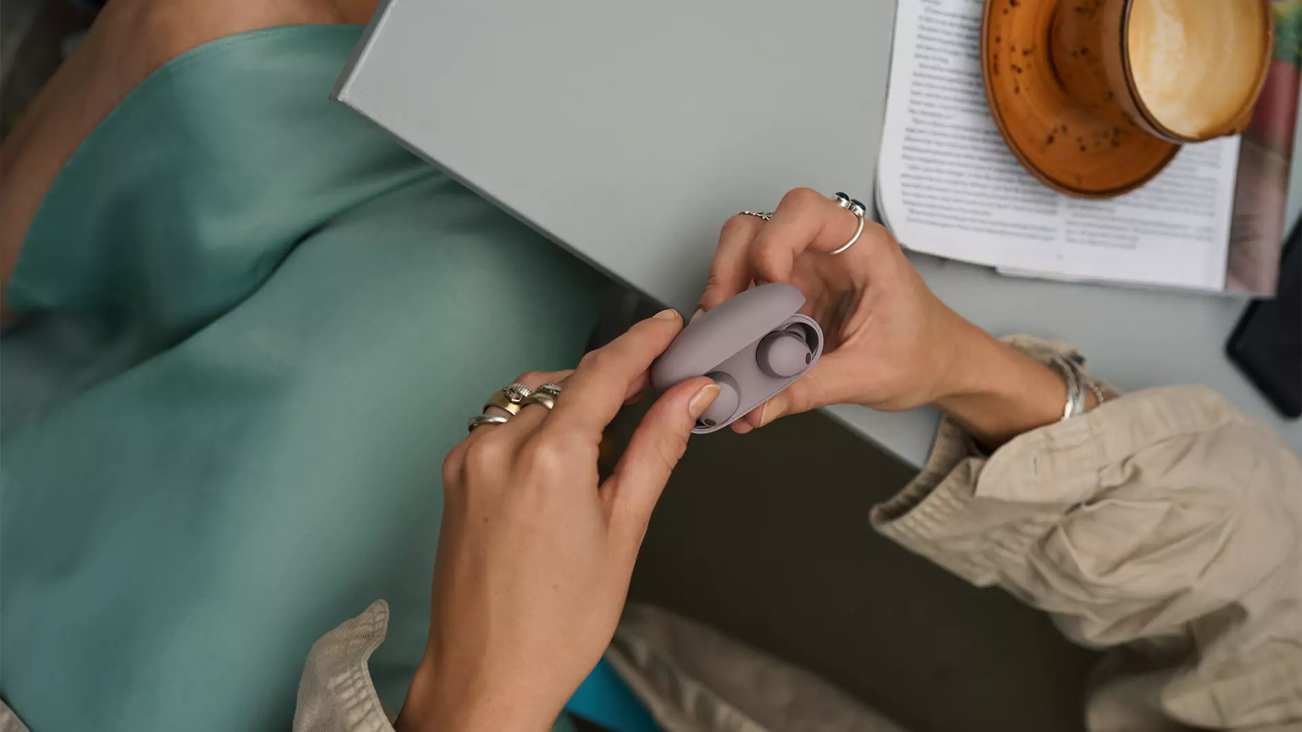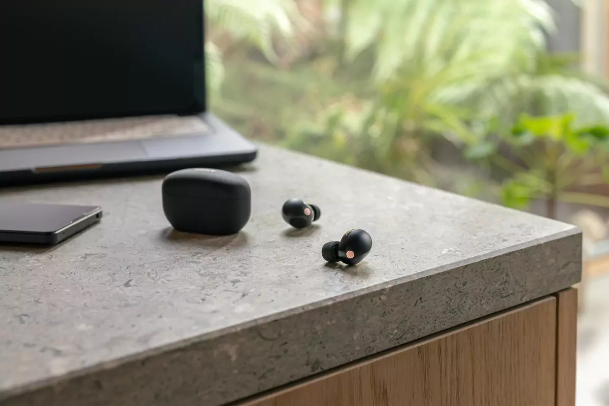 Połączenie wielopunktowe umożliwia sparowanie WF-1000XM5 z dwoma urządzeniami Bluetooth jednocześnie — więc gdy nadejdzie połączenie, słuchawki automatycznie połączą się z właściwym. Dzięki temu możesz szybko przełączyć się na dzwoniące urządzenie, a następnie z powrotem, po prostu wznawiając odtwarzanie na drugim urządzeniu.