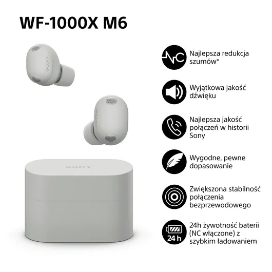 Podsumowując, Słuchawki Sony (srebrne) WF-1000XM6 to perfekcyjne połączenie elegancji, inteligentnych rozwiązań i najwyższej jakości dźwięku, stworzone dla najbardziej wymagających użytkowników.