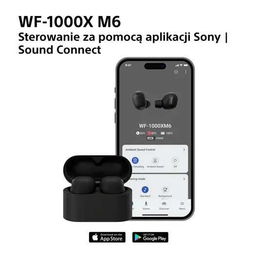 WF-1000XM6 obsługują proste sterowanie dotykowe oraz opcjonalne komendy głosowe, a pełnię możliwości oferuje aplikacja Sony | Sound Connect na Androida i iOS. Pozwala ona personalizować 10-pasmowy korektor, zarządzać redukcją szumów, przypisywać funkcje przyciskom, ustawić Quick Access do ulubionych serwisów streamingowych i wiele więcej.