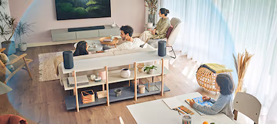 Dzięki obsłudze technologii Spotify Connect™ oraz innych serwisów muzycznych cała rodzina może wygodnie słuchać muzyki przez Bluetooth®, Chromecast lub Apple AirPlay 2.