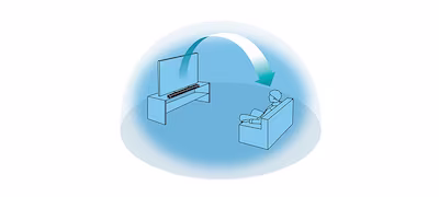 Rozległa strefa słuchania obejmuje całe pomieszczenie, więc rodzina i znajomi uzyskują identyczne wrażenia. Strefa słuchania nie ogranicza się do obszaru naprzeciwko telewizora — jest znacznie szersza.