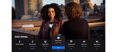 Dzięki integracji interfejsu użytkownika ustawienia dźwięku w soundbarze automatycznie pojawiają się w menu „Szybkie ustawienia” telewizora BRAVIA, a do wybierania pola dźwiękowego i regulacji głośności można używać pilota od telewizora.