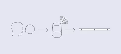 Soundbar jest zgodny z urządzeniami z Asystentem Google i technologią Chromecast built-in™ oraz z urządzeniami z asystentem Amazon Alexa. Po dodaniu soundbara HT-A3000 do grupy głośników w aplikacji Google Home można używać poleceń głosowych, by włączać odtwarzanie, regulować głośność i wybierać wiele innych funkcji.