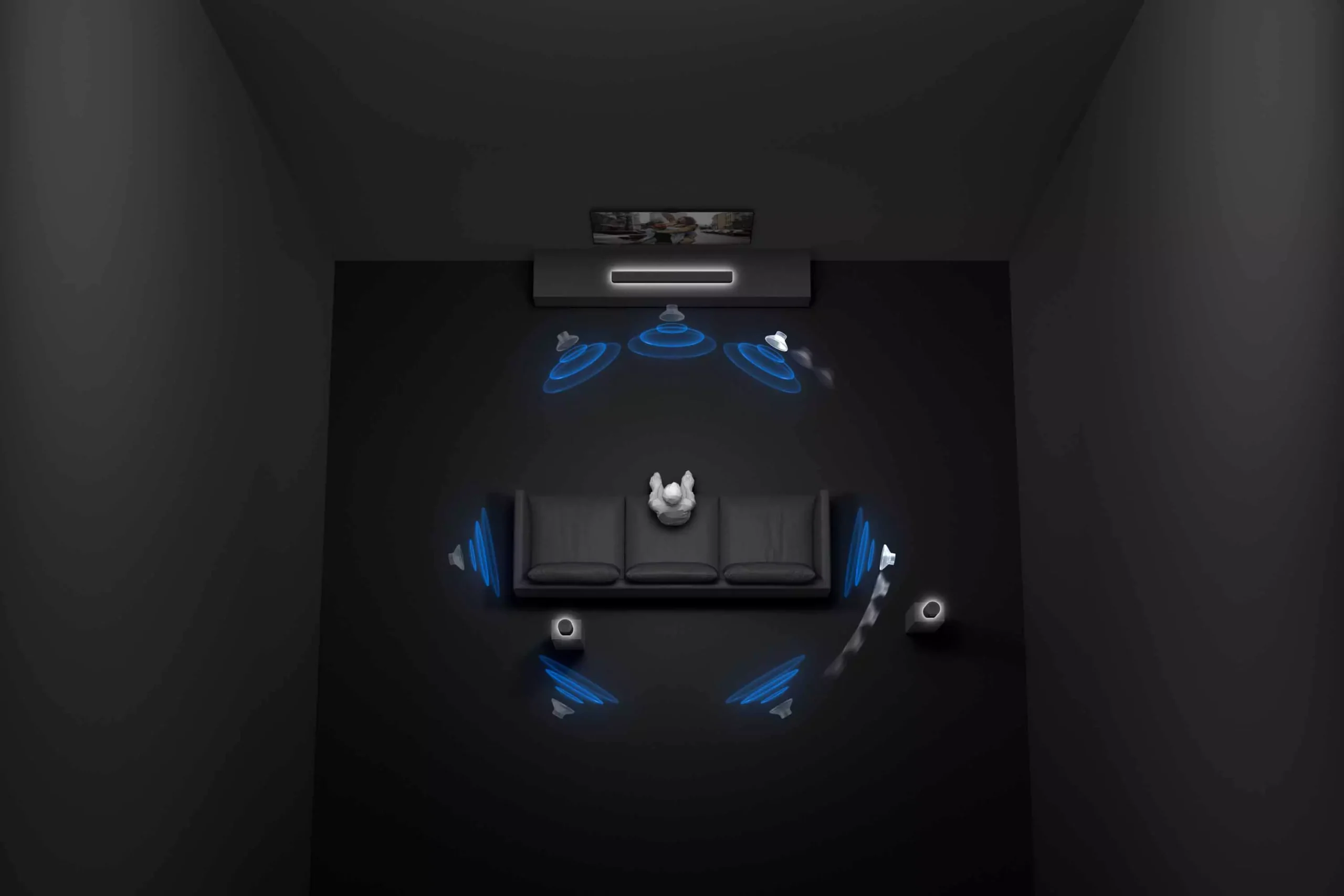 Funkcja Sound Field Optimization wykorzystuje wbudowane w soundbar mikrofony, by automatycznie skalibrować, zoptymalizować, a następnie dopasować dźwięk przestrzenny do Twojego otoczenia.
