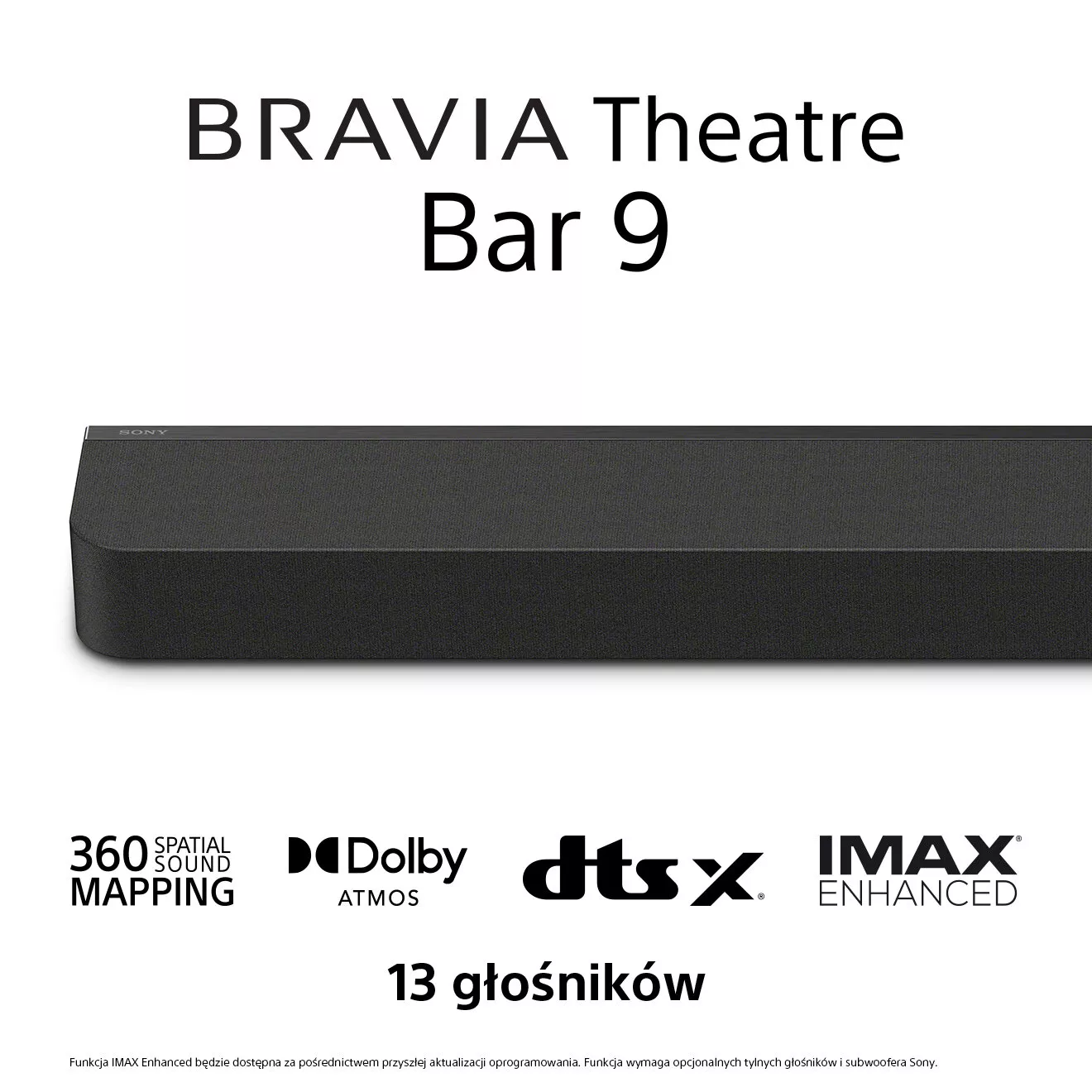 BRAVIA Theatre Bar 9 jest kompatybilny z Dolby Atmos i DTS:X. Soundbar spełnia również standardy certyfikatu IMAX Enhanced, dzięki czemu możesz przenieść kultowe wrażenia IMAXdo swojego domu1,2.