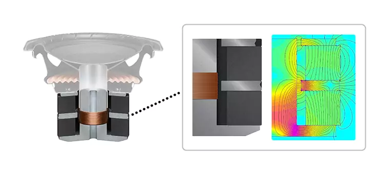 Obwód magnetyczny Σ (sigma) to firmowa technologia Sony, która zapewnia mocny, głęboki bas dzięki wzmocnieniu siły magnetycznej pobudzającej cewkę drgającą. W standardowych obwodach magnetycznych znaczna część tego oddziaływania ucieka na zewnątrz.