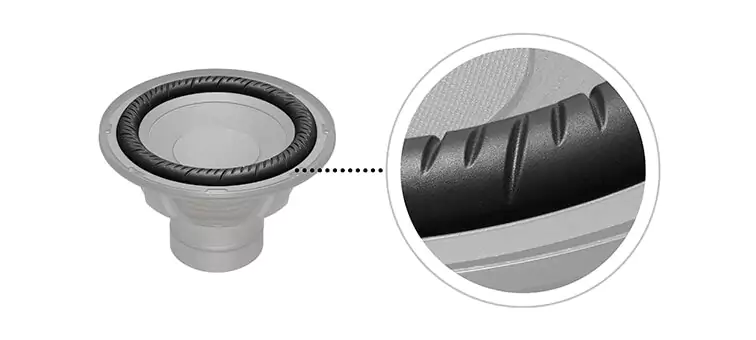Kolejna firmowa technologia Sony to zawieszenie z niezależnymi nacięciami. Koncentryczne nacięcia na brzegu membrany kompensują naprężenia wewnątrz i na zewnątrz zawieszenia. Rezultat to większa symetria amplitudy pionowej, niezbędna do uzyskania czystego dźwięku.