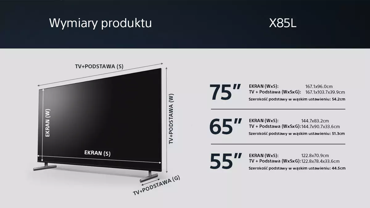 Wymiary telewizora bez podstawy (szer. x wys. x gł.)