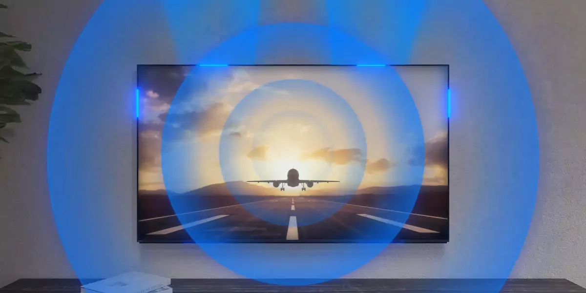 Wykorzystując dwa dolne, mocne głośniki i dwa boczne głośniki wysokotonowe pozycjonujące dźwięk, nasza technologia Acoustic Multi-Audio idealnie dopasowuje to, co widzisz i słyszysz.