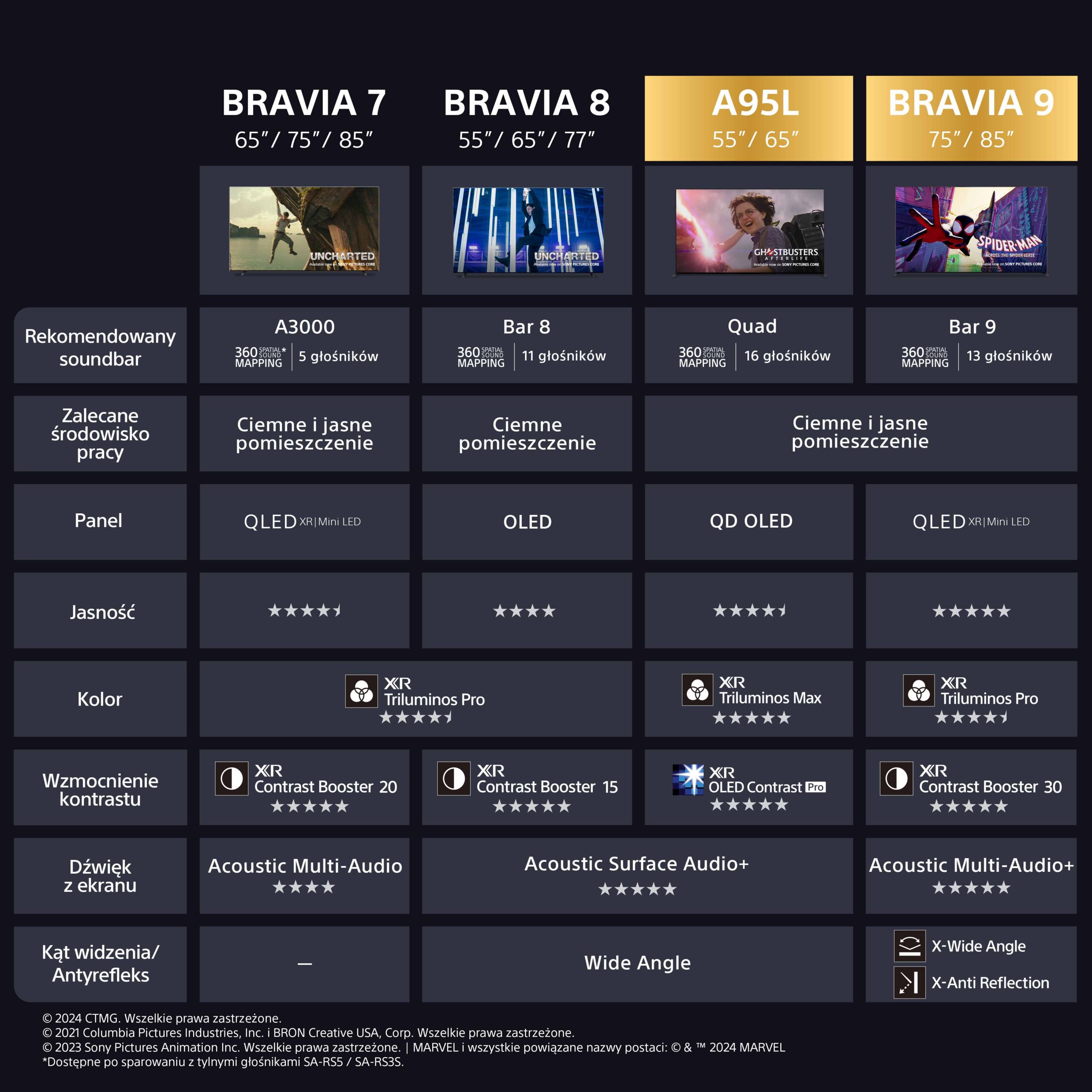 Kupując telewizor BRAVIA 7, możesz otrzymać 10 filmów w aplikacji SONY PICTURES CORE23 i 24 miesiące transmisji strumieniowej. Odkrywaj tytuły IMAX® Enhanced i Dolby Atmos®24 – nie ma lepszego sposobu, aby zobaczyć, jak niesamowicie mogą wyglądać filmy na ekranie telewizora BRAVIA!