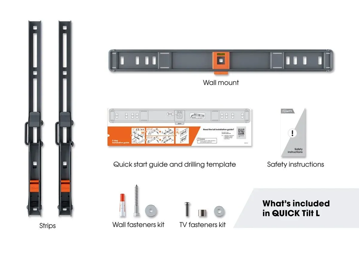Instalacja uchwytu ściennego serii QUICK Tilt jest łatwa dzięki unikalnemu systemowi EasyFIX™. Instalacja składa się zaledwie z trzech kroków. Możesz zawiesić swój telewizor na ścianie w ciągu maksymalnie 20 minut.