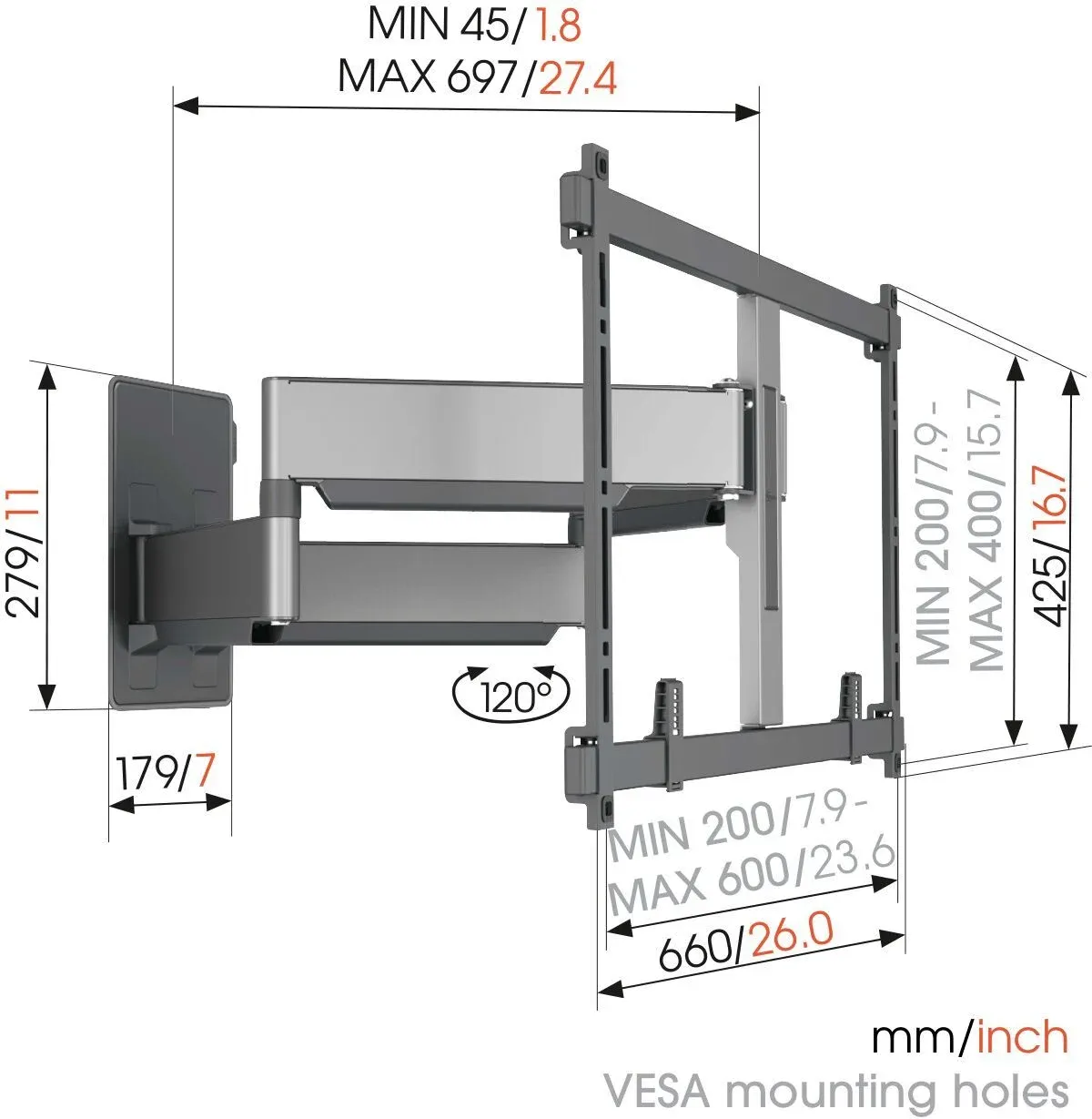 Vogel’s TVM 5855 | Uchwyt do TV 55–100″ | Wysuwany i obrót 120° | Wytrzymała konstrukcja | Maksymalna nośność 75 kg
