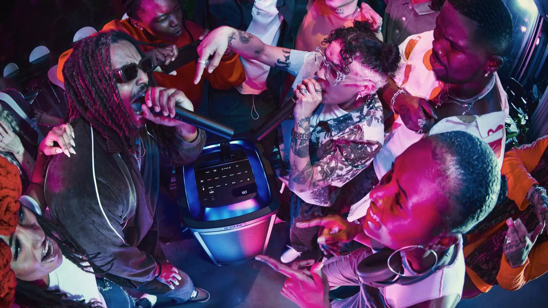 W zestawie znajdują się dwa mikrofony bezprzewodowe, więc niezależnie od tego, czy walczysz w rapowym pojedynku, czy odtwarzasz kultowy duet — możesz przejąć scenę dzięki ULT MIC.